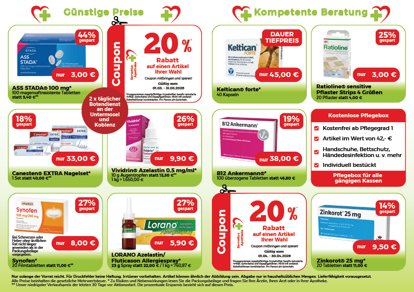 Als teilnehmende LINDA Apotheke bieten wir Ihnen jeden Monat ein zur Jahreszeit passendes Produkt aus dem rezeptfreien Sortiment an. Beim Kauf dieses Monatsproduktes erhalten Sie einen Mitgabeartikel gratis dazu.
